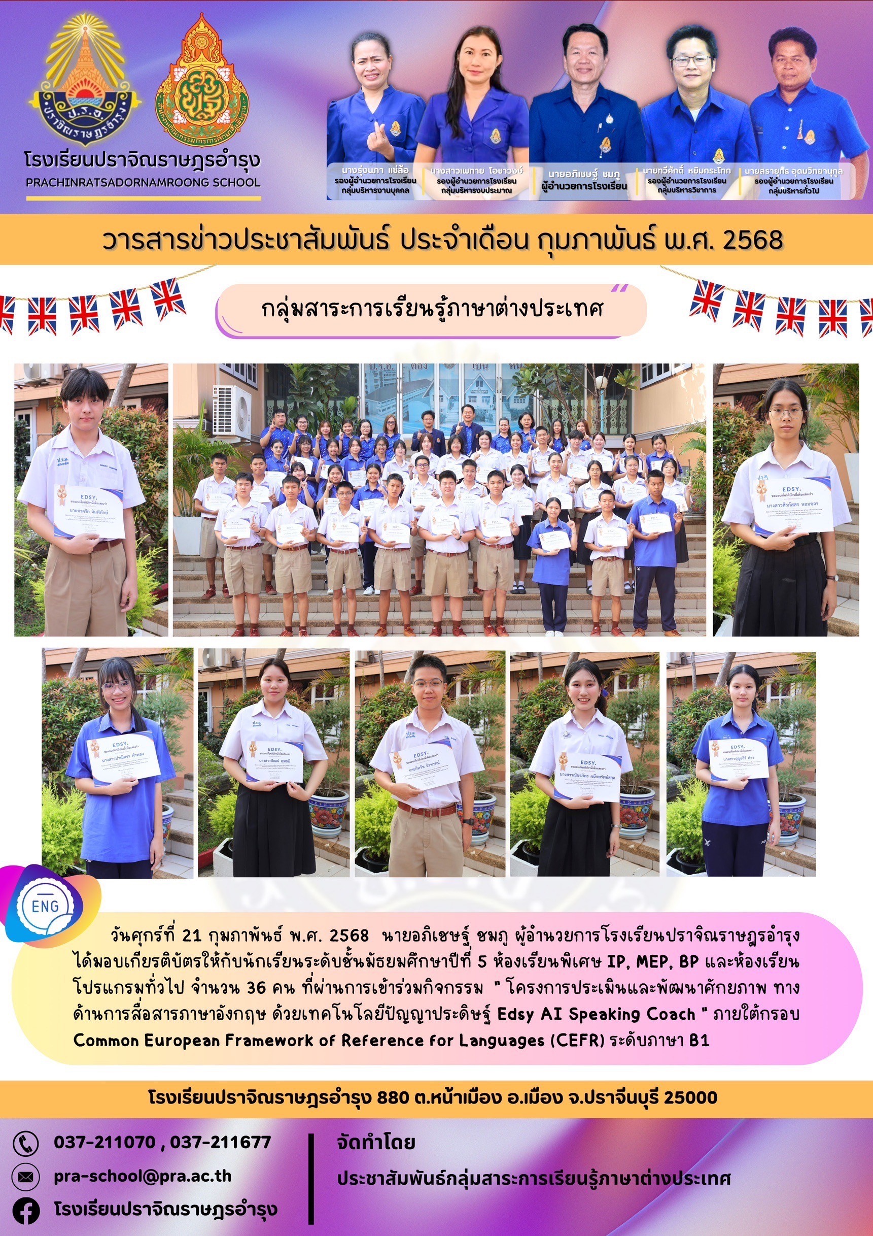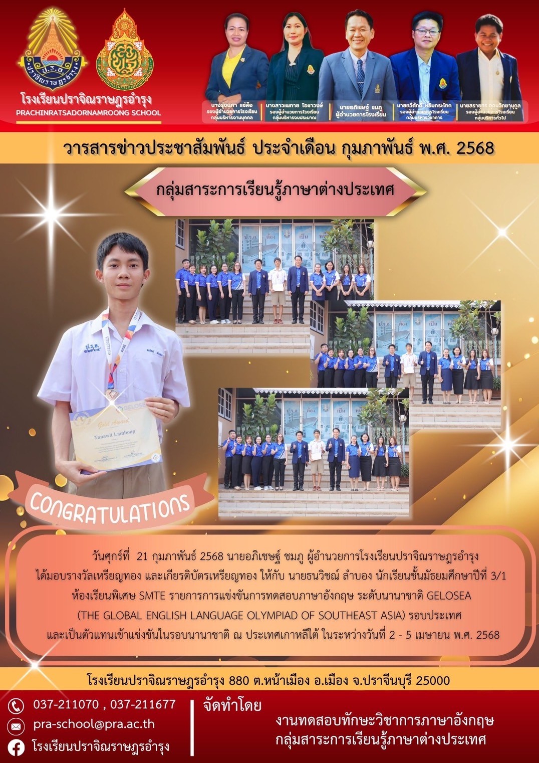 โรงเรียนปราจิณราษฎรอำรุง สังกัดสำนักงานเขตพื้นที่การศึกษามัธยมศึกษา ปราจีนบุรี นครนายก